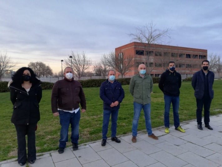 Representantes de la AVV La Garena y concejales del Ayuntamiento frente al IES inacabado