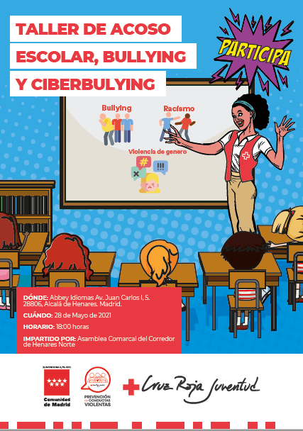 El próximo 28 de mayo tendrá lugar un taller de prevención del acoso escolar y ciberacoso en La Garena, el taller está recomendado para jóvenes entre 10 y 14 años y lo imparte Cruz Roja Juventud con la colaboración de la academia Abbey Idiomas. Desde la AVV somos conscientes de la importancia de difundir y apoyar estas iniciativas educativas solidarias.